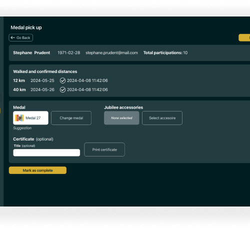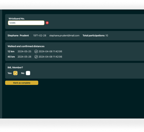 Marche Internationale asked us to develop a registration tool to streamline their event operations. The system features a centralised participants database, updated annually, along with check-in and check-out functionality to track progress at route checkpoints. It also collected participant data for federations to manage awards and simplified the award distribution process.