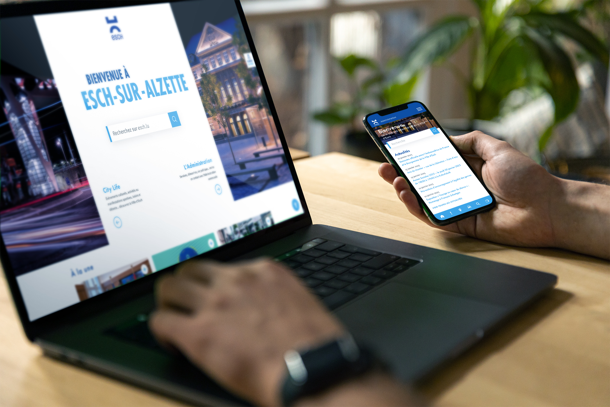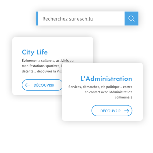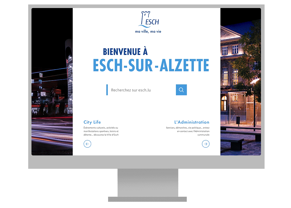 Entering the esch.lu website the user has four different main choices, so we can ensure to fulfill everyone’s specific needs. He can use the very prominent search, decide to look further into the City Life and Administration sites, or scroll down and discover what Esch-sur-Alzette has to offer.